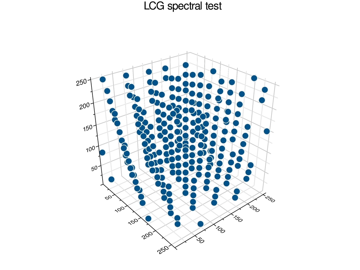 線形合同法で生成された数列がどれくらい乱雑かを判定する方法の一つにスペクトル検定がある。